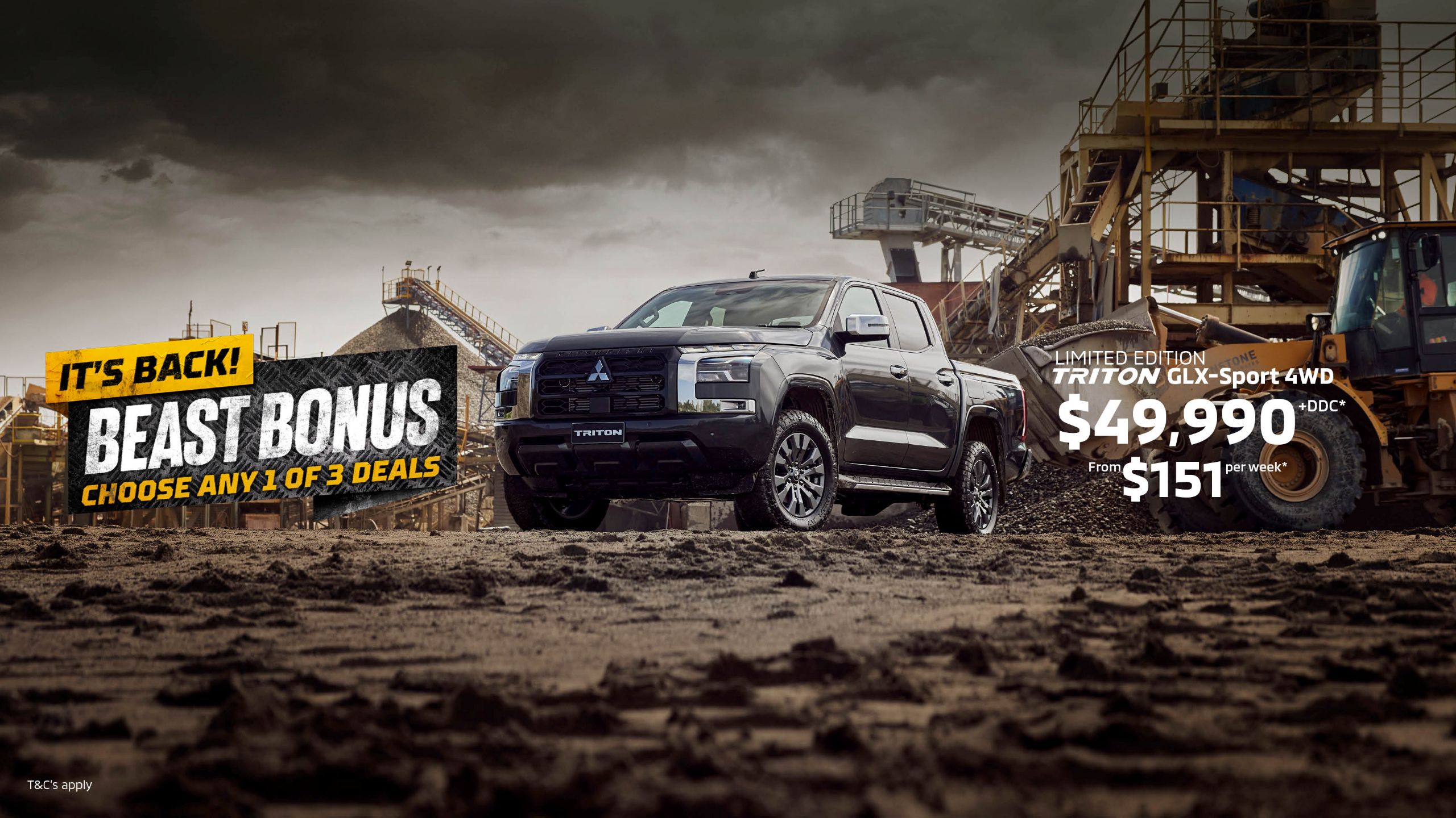 For a limited time, when you purchase a new Triton Double Cab (GLX, GLX-Sport, or GLX-R), you can choose one of these incredible bonuses: