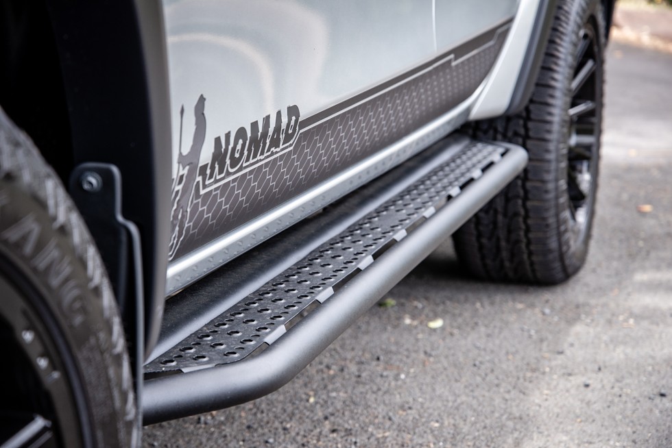 20" AR alloys with A/T tyres, Load-lid (automatically opens cover by remote), Bedrug liner, central locking system for rear tailgate, Blackout with Nomad Hex decals, aftermarket leather seats, tints all round, and integrated LED light-bar extension.